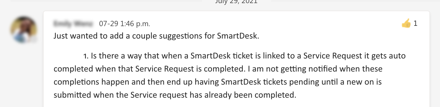 On the resident’s end, they are now able to see the details of their Helpdesk ticket and view the activity log of events, just like our internal staff